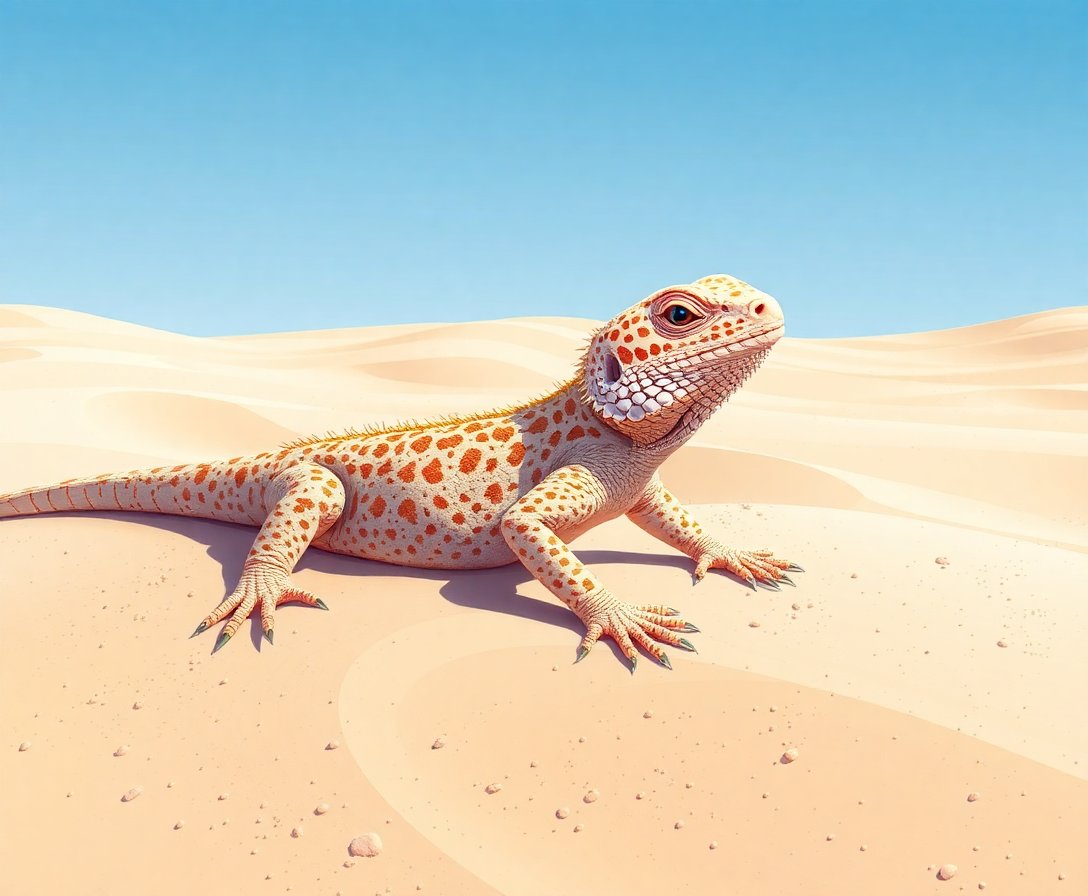 Ultimately, step back and admire your finished desert scene. The realistic lizard emerges beautifully against pale sandy textures. Your completed artwork deserves prominent display in any room.
