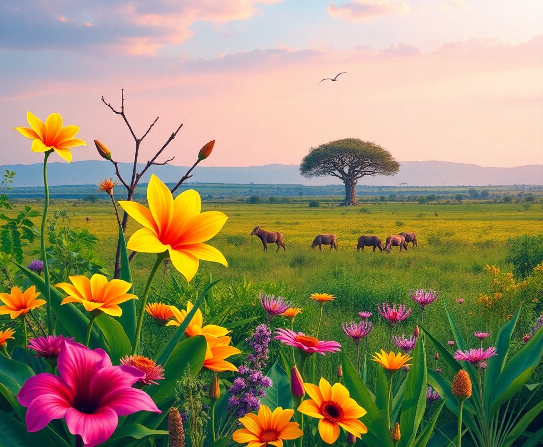 Ultimately, step back and admire your finished savannah scene. The exotic blooms and realistic foliage create a captivating display worthy of any wall space.