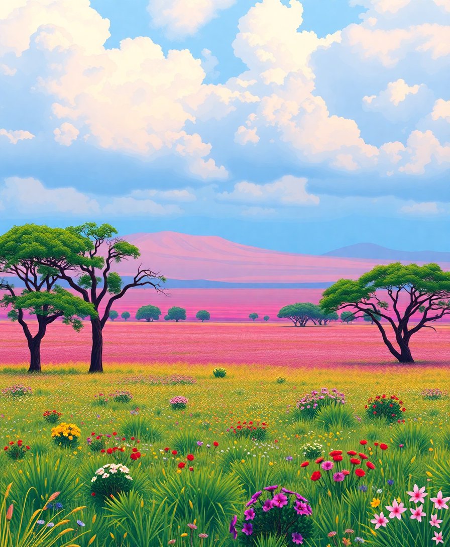 Ultimately, add the final blooming details that bring life to your rainy plains scene. Furthermore, step back and admire your completed masterpiece as it transforms any room.