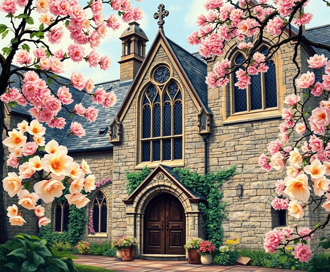 This unique design merges exotic botanical elements with gothic architectural beauty seamlessly. The vintage masonry backdrop provides sophisticated contrast to vibrant floral details. Furthermore, the orange color palette adds warmth and energy to any living space. Professional-quality materials ensure your finished artwork maintains its beauty for years. The Gothic revival styling appeals to art enthusiasts who appreciate historical architectural elements.