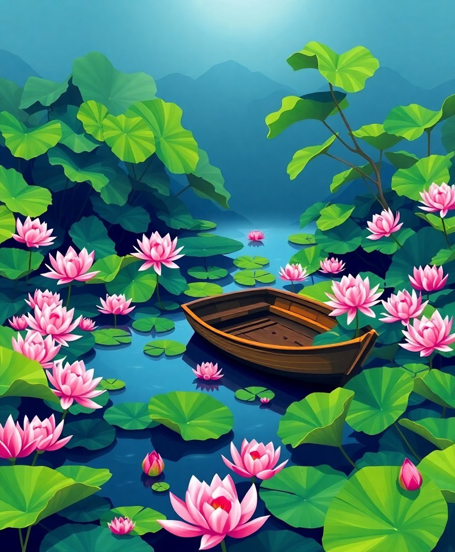 Transform your space with the stunning Boat In Tropical Lotuses Paint By Numbers kit. This captivating design features a peaceful boat nestled among vibrant lotus blooms in an emerald pond. Create your own tropical paradise through this meditative painting experience.