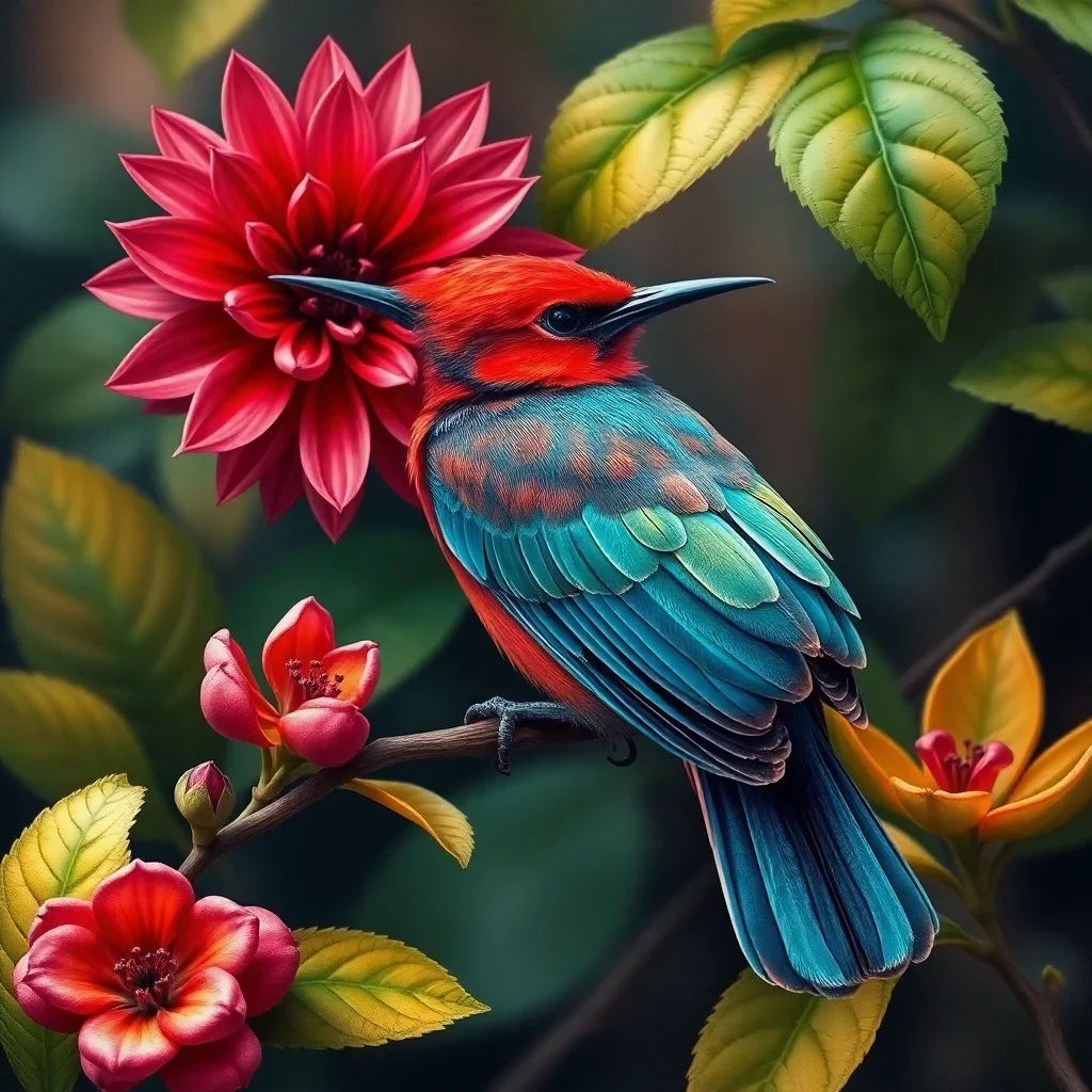 Ultimately, step back and admire your completed masterpiece. The crimson sunbird emerges in stunning detail against botanical backgrounds. Your finished artwork transforms any space into a tropical paradise.