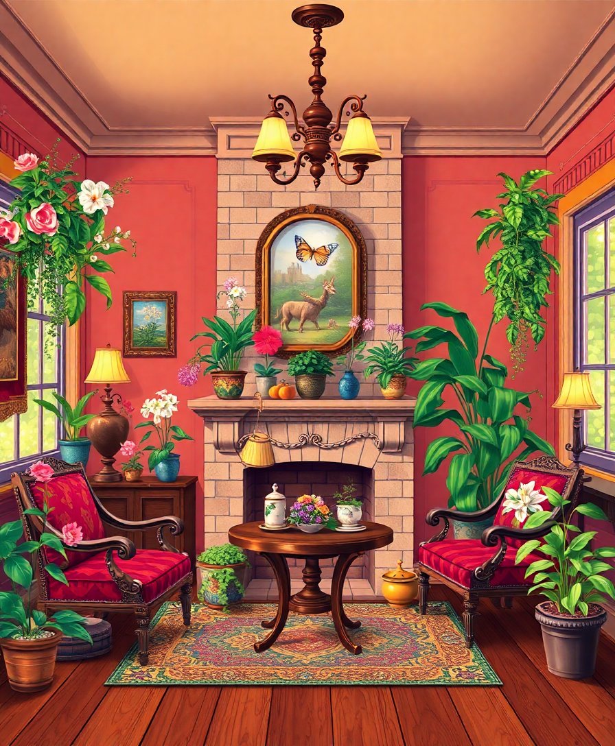 Transform your space with the enchanting Botanical Explorer Hearth Room Paint By Numbers kit. This captivating design features a cozy Victorian parlor scene with vintage cartography elements and warm firelight ambiance. Furthermore, the detailed botanical illustrations create an immersive artistic experience that brings classic elegance to life.