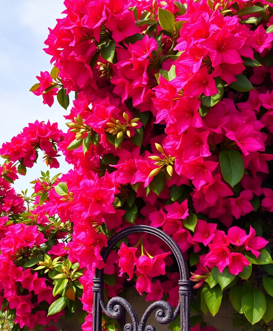 The canvas measures 16×20 inches, perfect for displaying in living rooms, bedrooms, or offices. The size provides enough detail to showcase the intricate wrought iron and flowing bougainvillea elements.