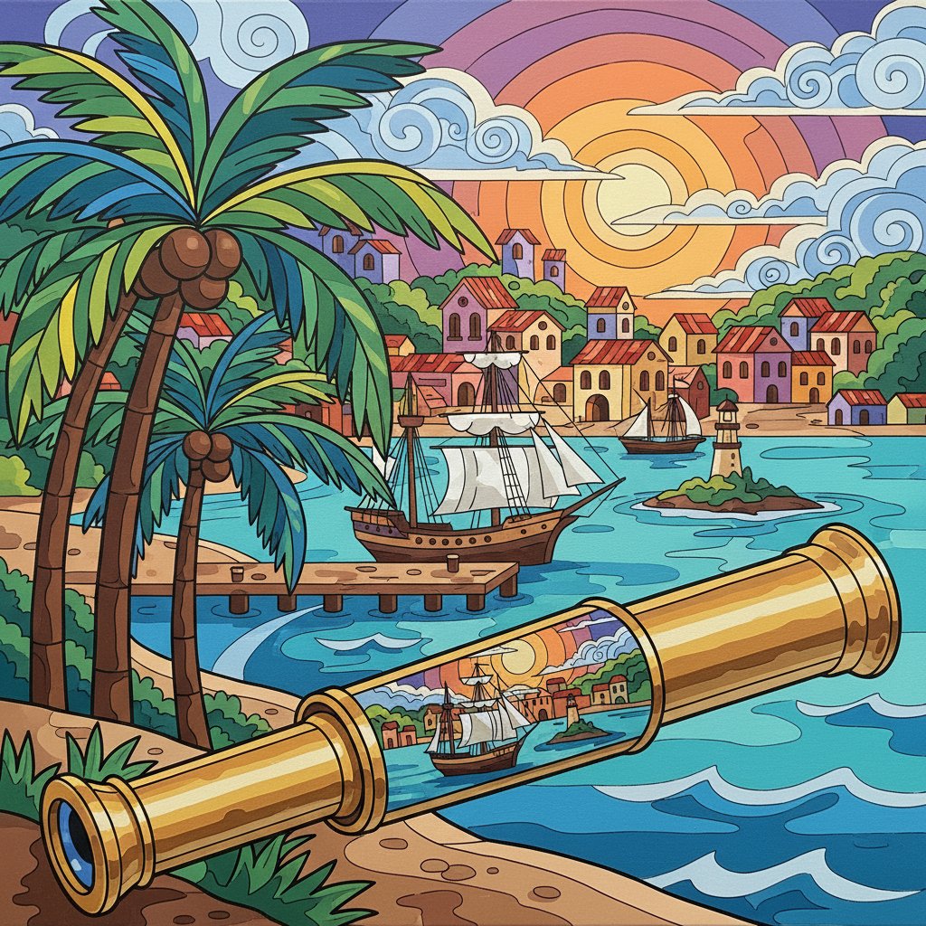 Transform your space with the captivating Brass Spyglass Tropical Port Paint By Numbers, an artistic journey that brings maritime elegance to life. This stunning kit captures the essence of historic harbor scenes through detailed brushwork and rich coastal imagery.