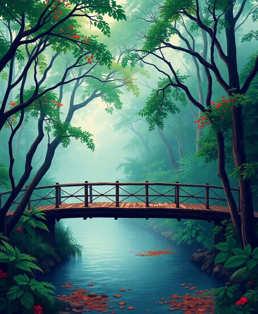 Transform your artistic vision with the Bridge Into Vintage Mist Paint By Numbers kit. This captivating design features an atmospheric suspension bridge emerging through vintage sepia tones. Meanwhile, misty jungle elements create depth and mystique in this stunning landscape composition.