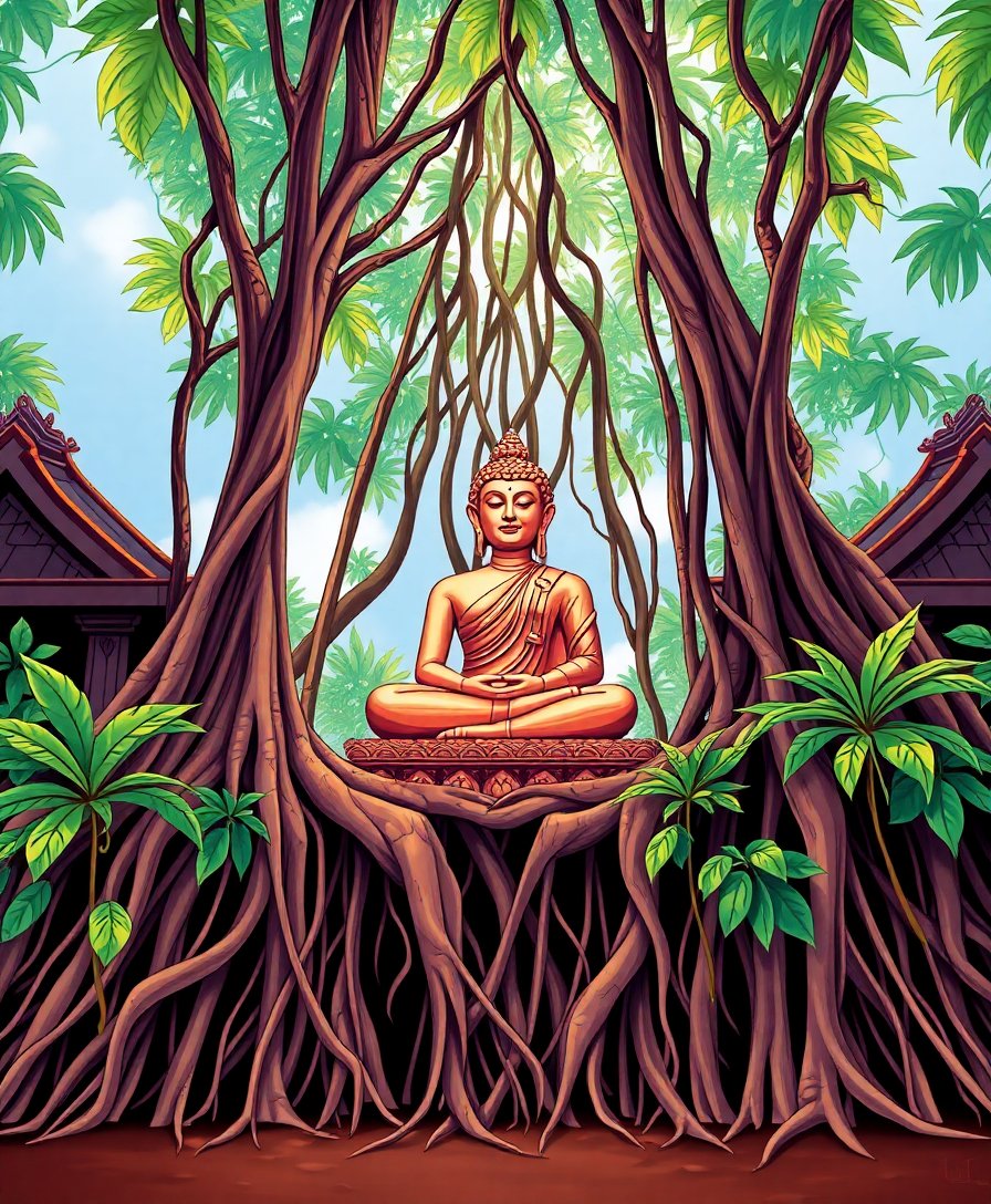 Ultimately, add final details to complete your masterpiece. Therefore, step back and admire your finished tropical sanctuary. Finally, your Buddha Beneath Tropical Roots Paint By Numbers artwork radiates tranquility and natural beauty.