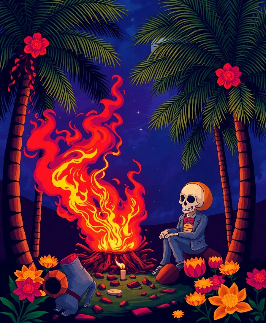 Ultimately, step back and admire your finished masterpiece. The firelight and tropical fronds now glow with life on your canvas. Therefore, your artistic achievement deserves prominent display in your home.