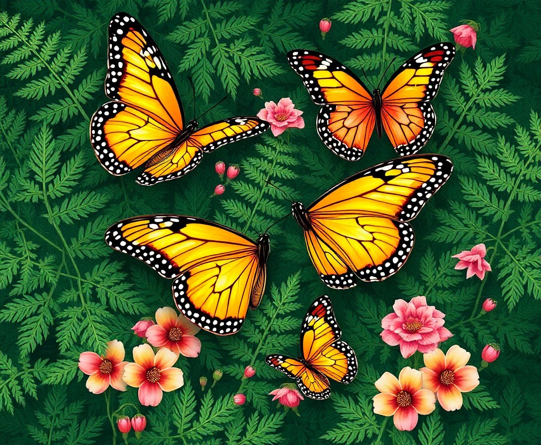 Therapeutic Benefits of Butterflies Amidst Vintage Ferns Paint By Numbers