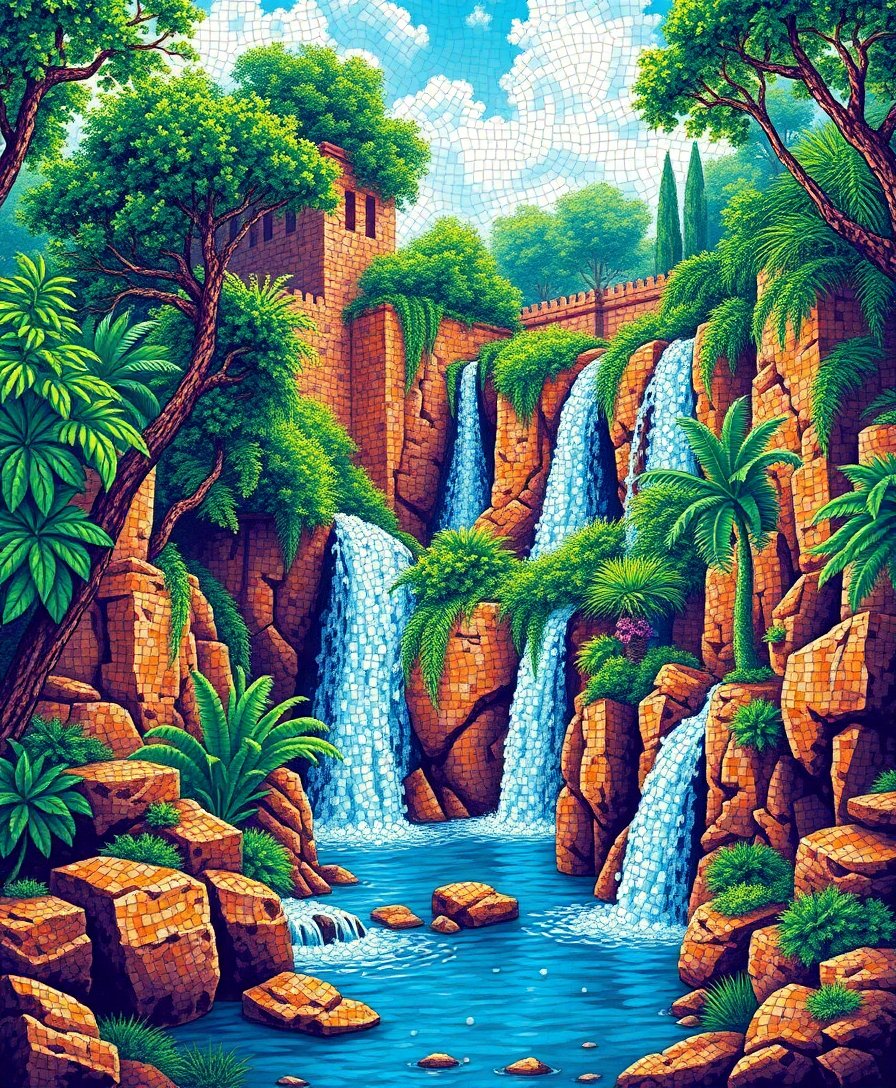Byzantine Jungle Mosaic Falls Paint By Numbers