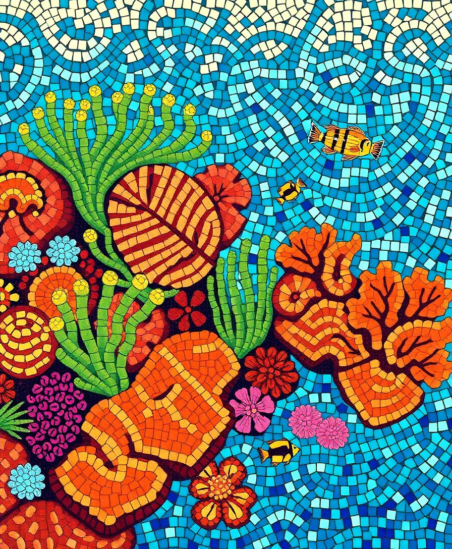 This unique kit combines authentic Byzantine mosaic patterns with tropical reef imagery, creating a one-of-a-kind artistic experience that celebrates both cultural heritage and natural beauty.