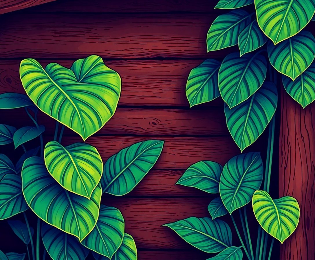 Ultimately, step back and admire your completed masterpiece. The tropical monstera leaves create stunning contrast against rustic cabin elements. Display your finished artwork proudly in your favorite room.