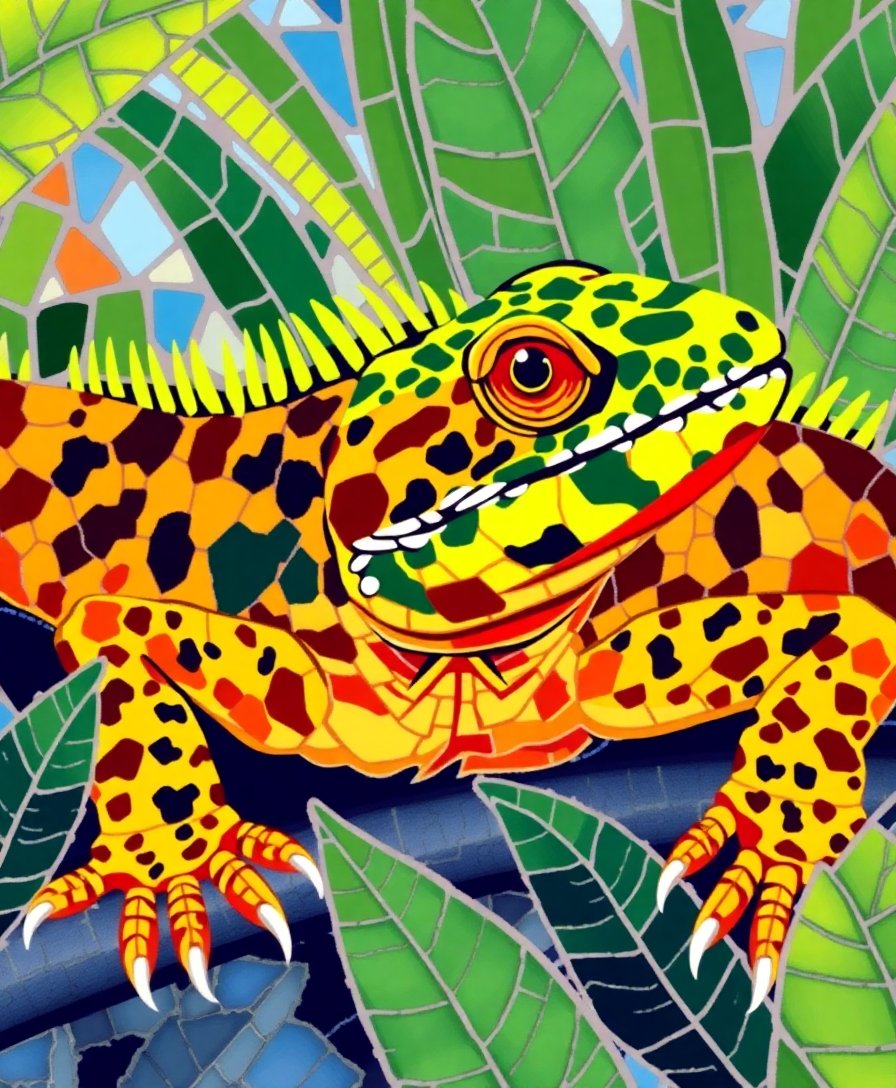Transform your space with this stunning Camouflaged Tropical Reptile Mosaic Paint By Numbers. This intricate design captures the mesmerizing beauty of tropical reptiles nestled within lush vegetation. Moreover, the mosaic-style composition creates a captivating visual experience that celebrates ancient artistic traditions.