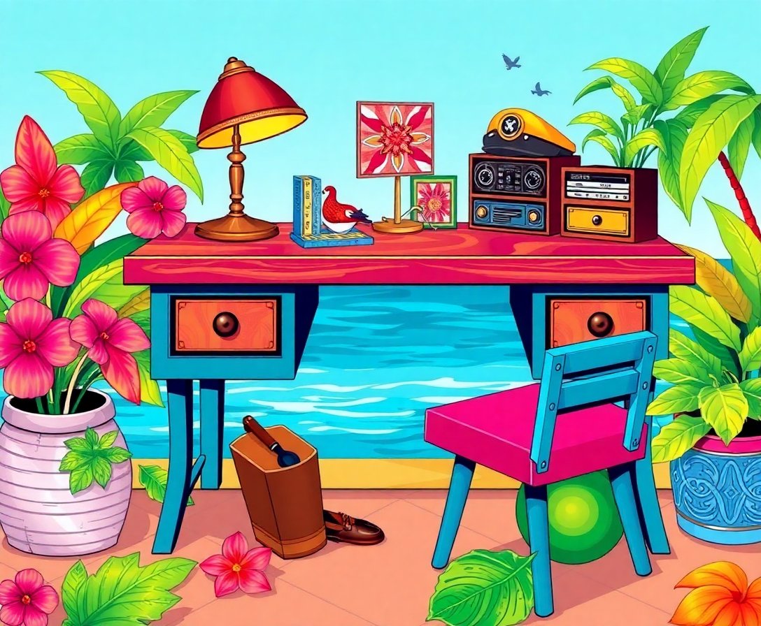 Premium linen canvas ensures durability and professional appearance. High-quality acrylic paints deliver vibrant, long-lasting colors. Clear numbering system makes painting accessible for all skill levels. The vintage tropical desk design adds sophisticated charm to any space.