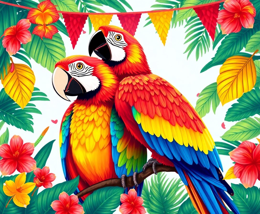 This therapeutic painting activity reduces stress while encouraging artistic expression. The nostalgic carnival theme evokes joyful memories of tropical celebrations. Each brushstroke brings meditative calm as colorful macaws and festive flags come to life on canvas.