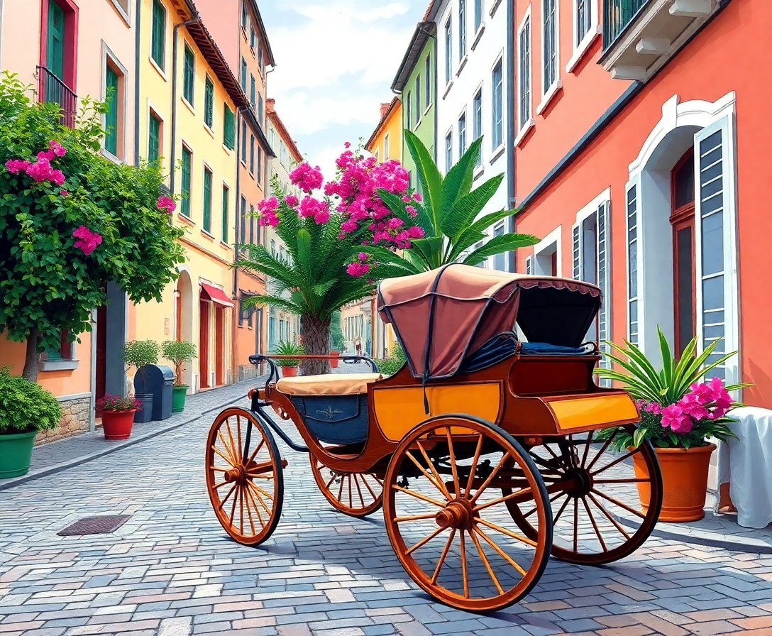 Transform your space with the enchanting Carriage In Tropical Shade Paint By Numbers kit. This captivating scene transports you to a sunlit European courtyard where lush greenery creates natural shade over cobblestone pathways. Each brushstroke brings old-world charm to life through vibrant tropical foliage and timeless transportation elements.