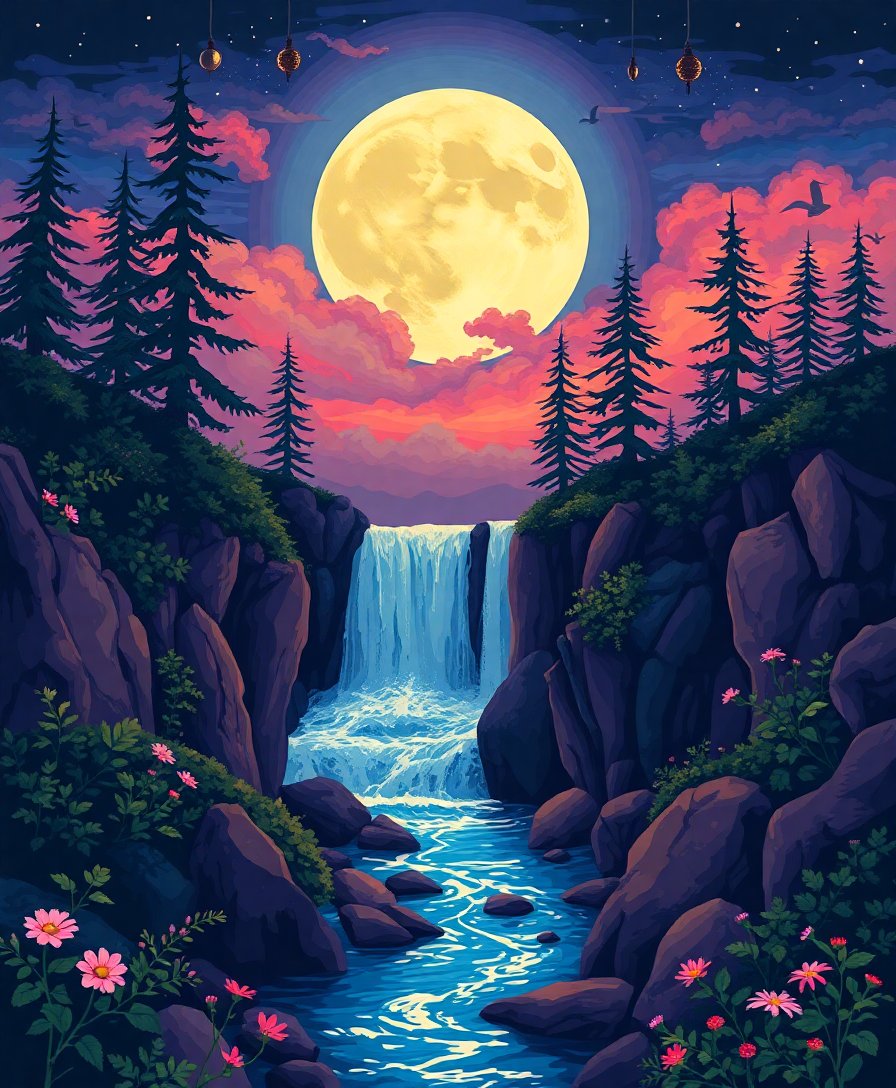 Subsequently, begin with lighter moonlight areas and progress to darker cascade sections. Additionally, blend colors gently at borders for seamless transitions. Furthermore, take regular breaks to maintain focus and enjoy the relaxing process.