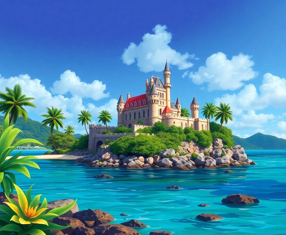 Transform your creative space with this stunning Castle Above Tropical Waters Paint By Numbers masterpiece. This captivating design showcases a majestic fortress perched dramatically above crystal-clear tropical waters. Furthermore, the intricate architectural details and vibrant ocean hues create an enchanting artistic experience.