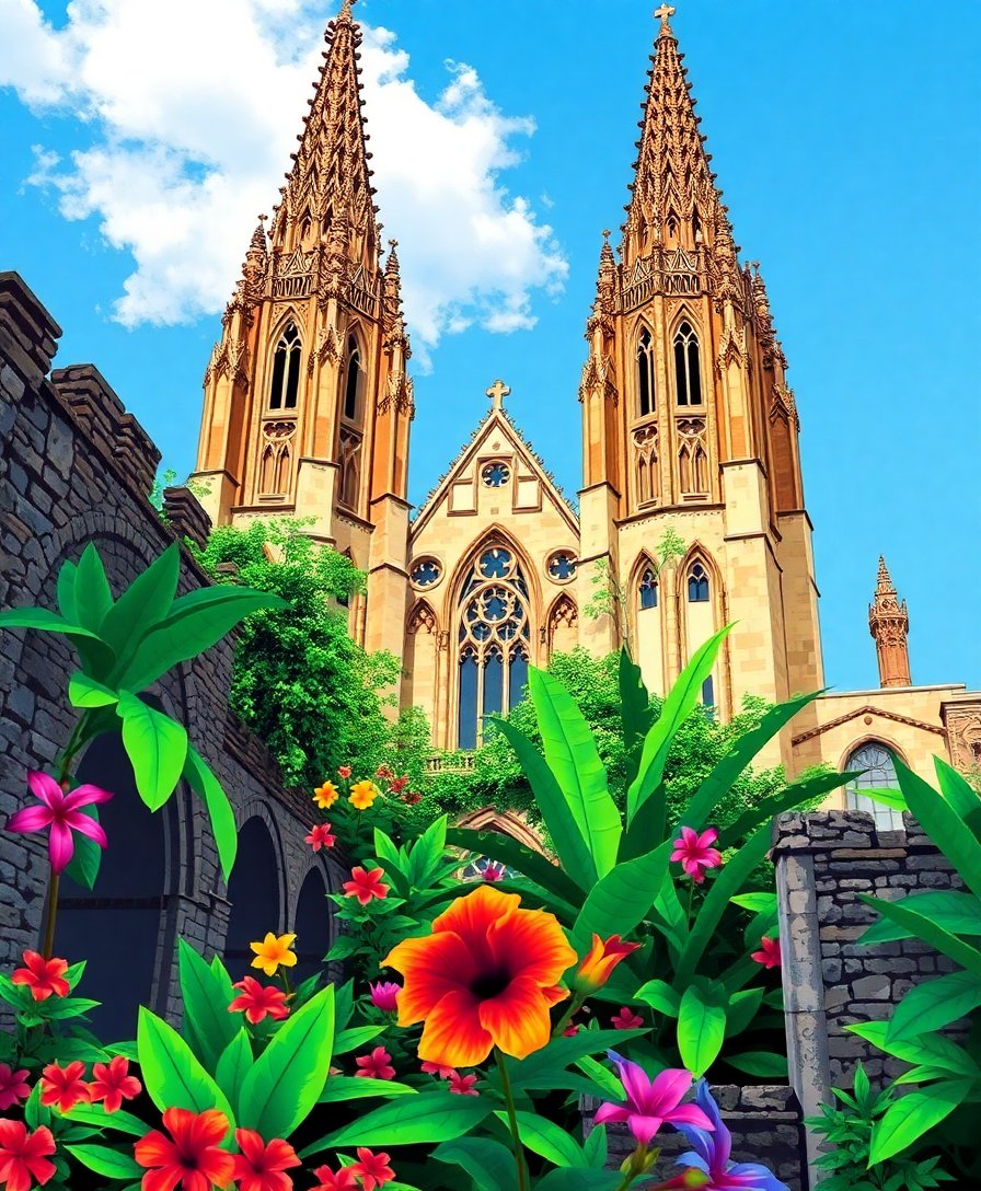 Ultimately, step back and admire your finished cathedral masterpiece showcasing nature’s triumph over time. Furthermore, the sepia palette creates timeless elegance perfect for any space. Your completed artwork celebrates both Gothic architecture and botanical beauty.