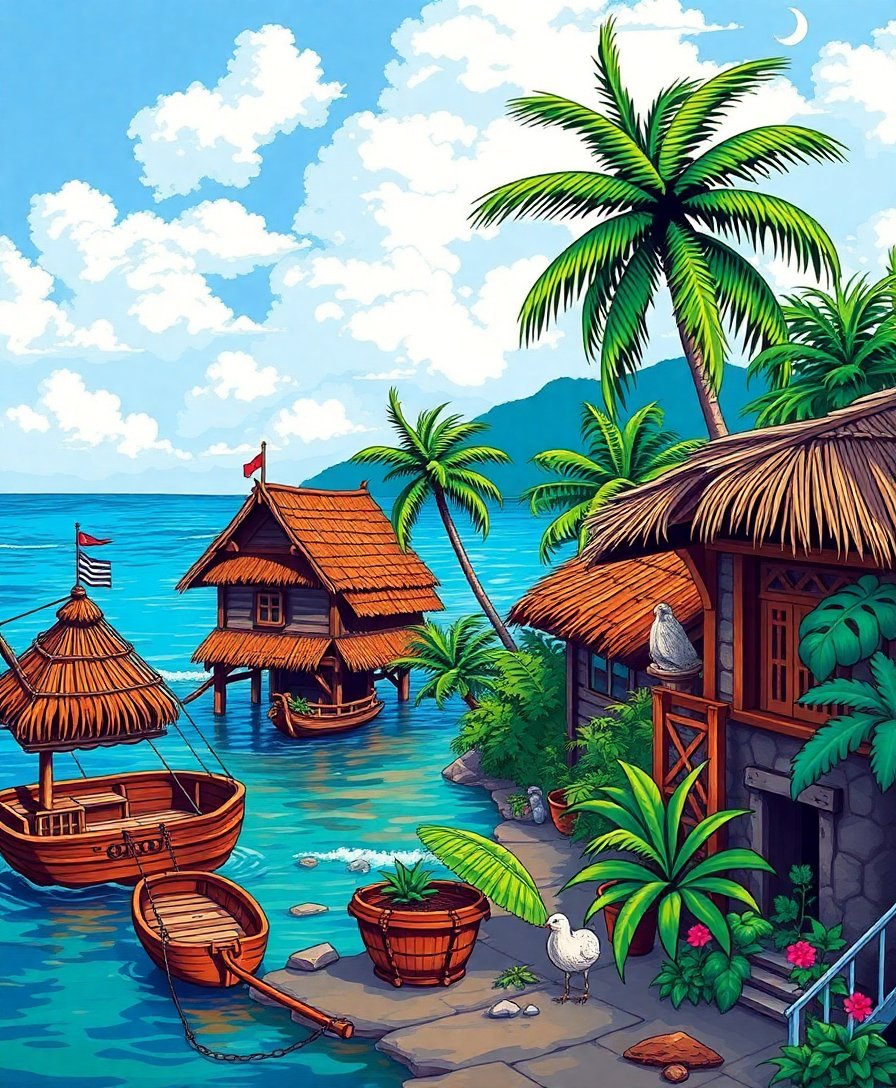 The high-quality linen canvas provides ample space for detailed maritime elements and tropical sea features. Perfect size for displaying in living rooms, offices, or studies.