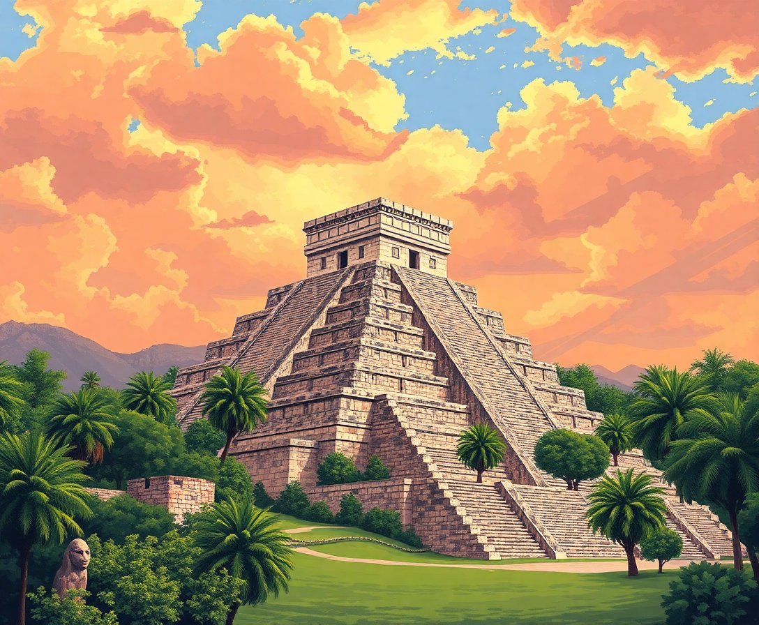 Experience the timeless majesty of ancient Mesoamerica with this Chichen Itza Sepia Skies Paint By Numbers kit. This stunning artwork captures the iconic pyramid in warm sepia tones, bringing history to life on your canvas. Transform your space with this sophisticated piece that celebrates one of the world’s most renowned archaeological wonders.