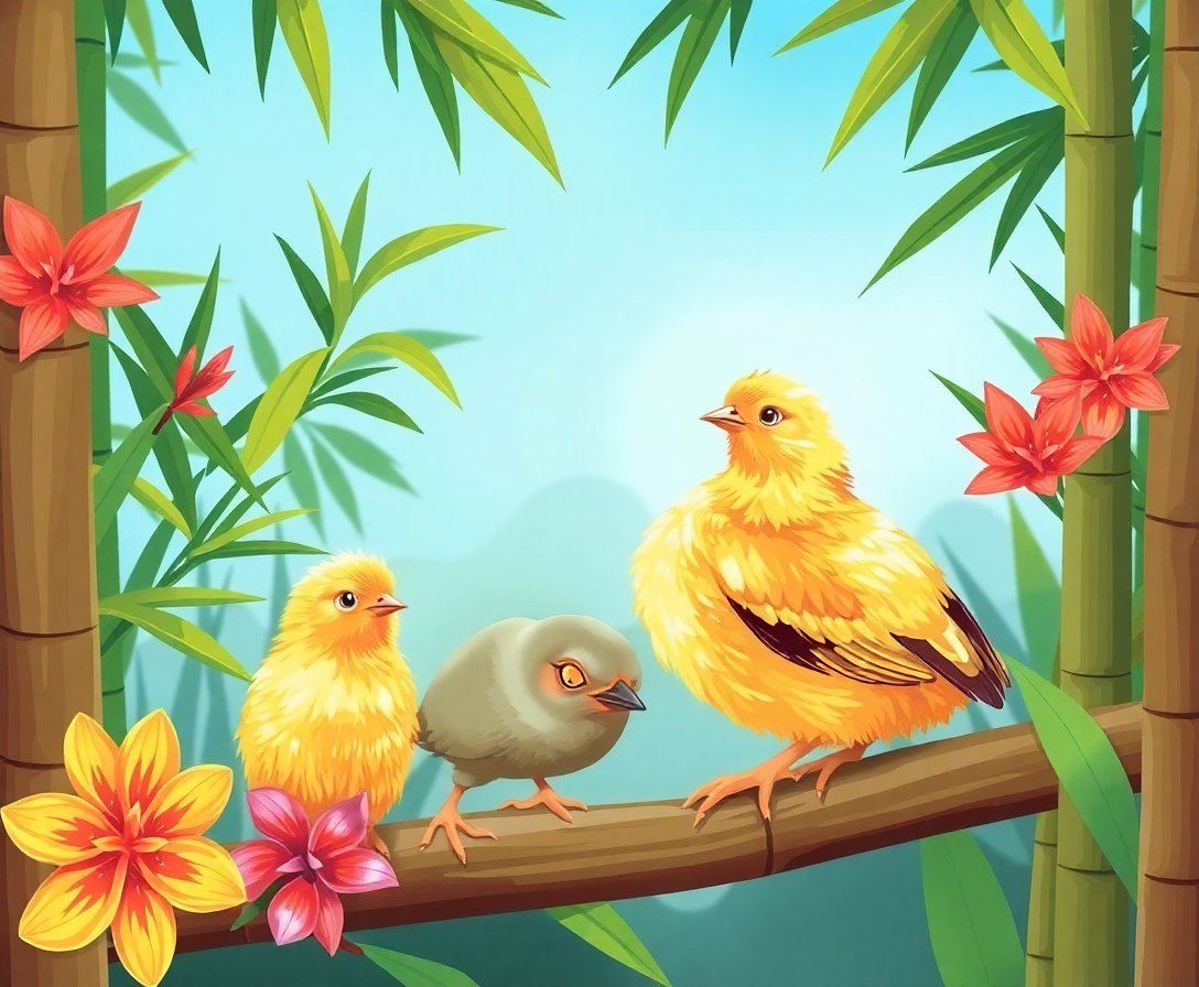 Ultimately, step back and admire your completed Easter masterpiece. The charming chicks nestled among vibrant bamboo create a heartwarming scene. Your finished artwork brings spring’s joy into any room with its delicate tropical charm.