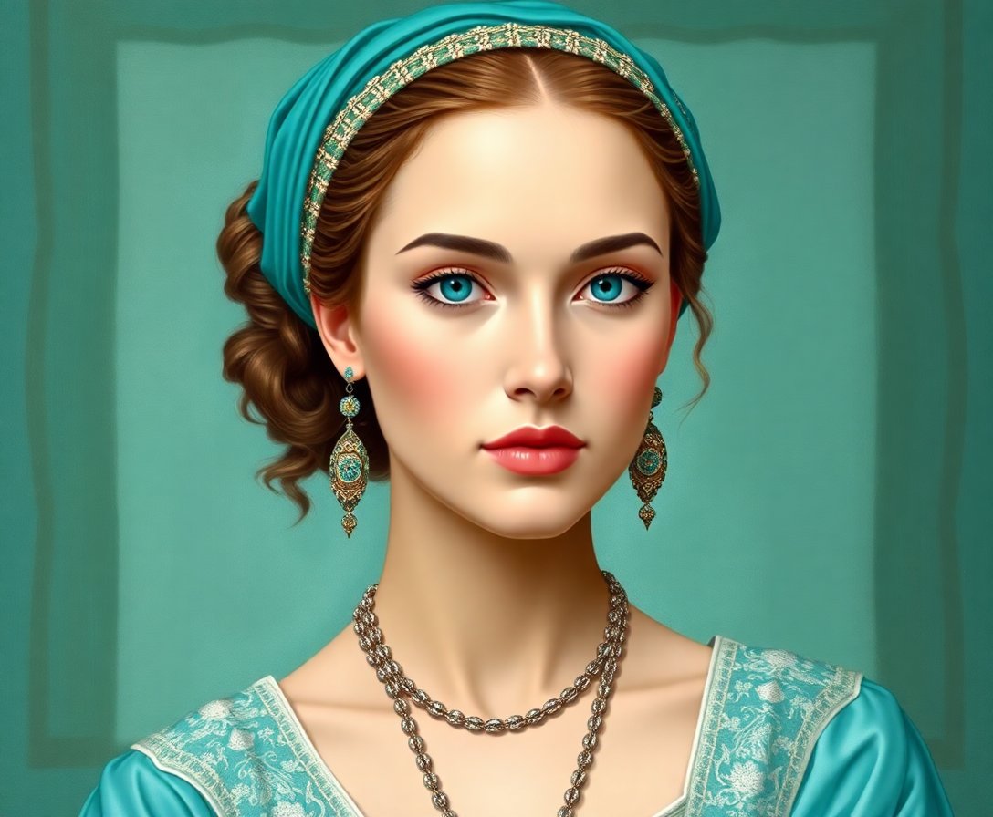 Transform your space with this exquisite Classic Beauty Turquoise Oasis Paint By Numbers masterpiece. This stunning portrait combines Renaissance elegance with tropical serenity. Moreover, the intricate details create a captivating focal point for any room.