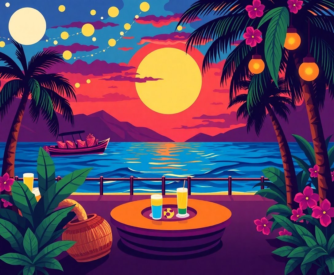 Transform your space into a glamorous vintage paradise with this Classic Hollywood Luau Night Paint By Numbers masterpiece. This cinematic-inspired kit captures the essence of golden age cinema festivities. Moreover, warm tones and festive tiki torches create an enchanting artistic experience.