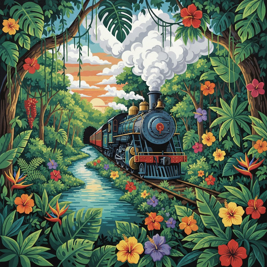 Transform your creative space with this captivating Classic Locomotive Rainforest Arrival Paint By Numbers masterpiece. This vintage-inspired design captures the romance of steam railway travel through lush jungle landscapes. Moreover, the intricate details bring antique locomotive charm to life on canvas.