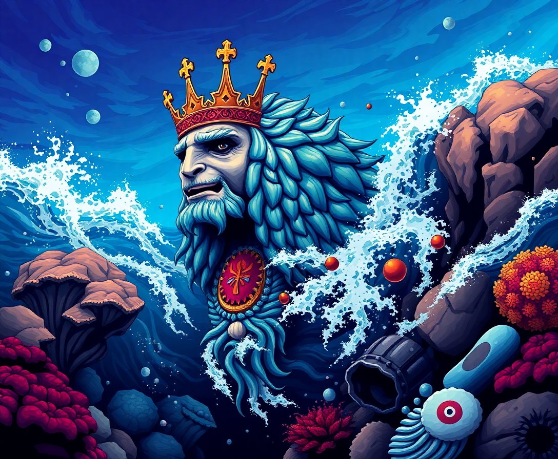 The realistic water effects and nostalgic golden age comic styling create a unique artistic challenge. The detailed ocean king imagery captures classic entertainment art perfectly.