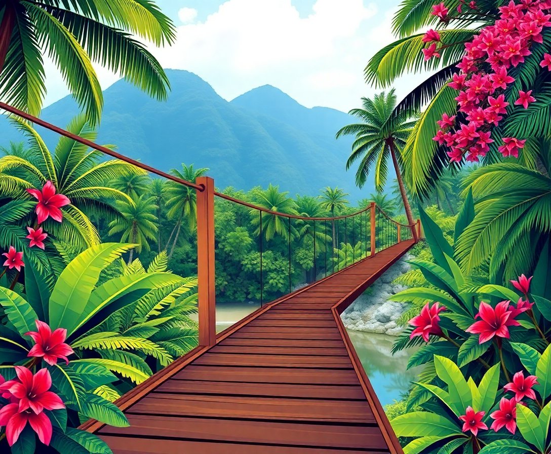 Transform your creative space with this stunning Classic Tropical Suspension Bridge Paint By Numbers masterpiece. This breathtaking artwork captures the architectural elegance of suspension bridges nestled within lush tropical landscapes. Each brushstroke brings you closer to creating a sophisticated piece that celebrates both engineering marvels and natural beauty.