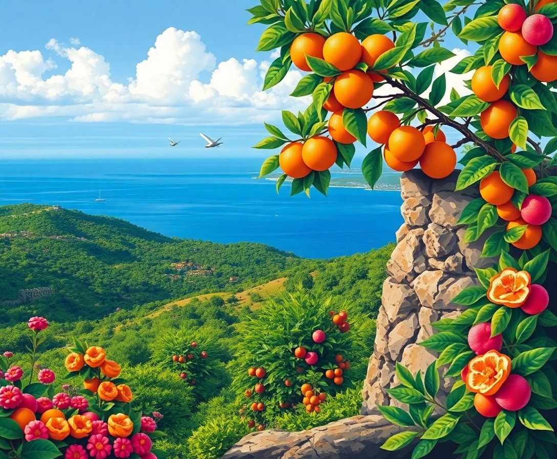 Transform your space with this stunning Cliffside Tropical Citrus View Paint By Numbers kit. This captivating artwork combines the serenity of coastal cliffs with vibrant tropical citrus groves. Moreover, the vintage-inspired design brings timeless elegance to any room.