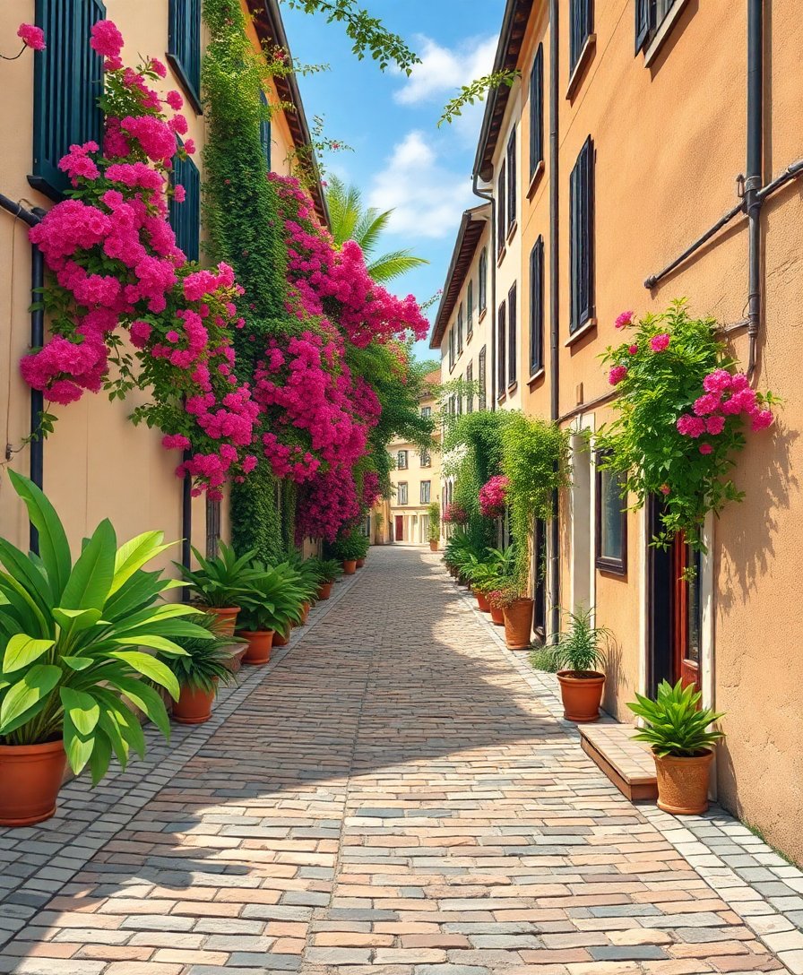 Transform your living space with the enchanting Cobblestones Beneath Tropical Blooms Paint By Numbers kit. This stunning artwork captures the romantic essence of European cobblestone streets adorned with vibrant tropical flora. Create a masterpiece that blends old-world charm with exotic botanical beauty.