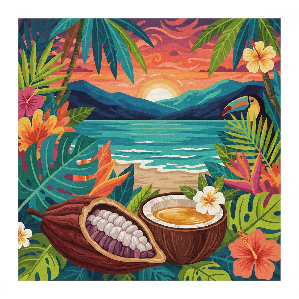 Ultimately, step back and admire your finished gourmet masterpiece showcasing rich tropical flavors. Therefore, your realistic creation becomes a sophisticated focal point. Consequently, this artwork transforms any room into an elegant tropical paradise.
