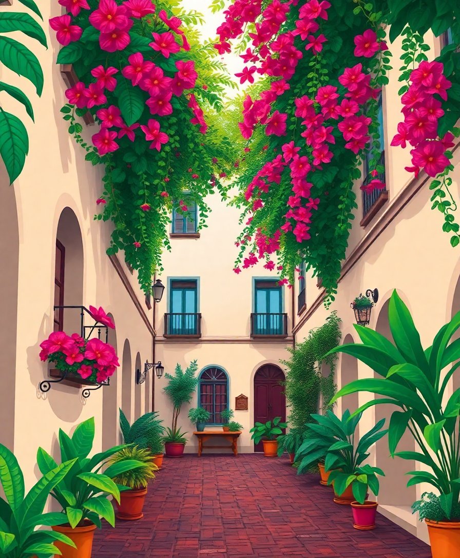 Courtyard Under Tropical Flora Paint By Numbers