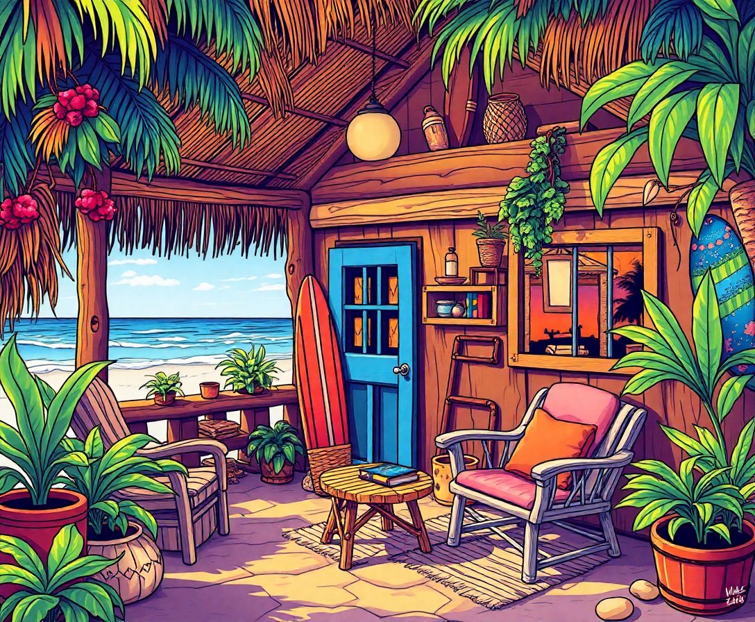 Furthermore, this realistic artwork features authentic weathered details and cozy indoor elements. Additionally, the antique surf theme appeals to coastal enthusiasts and rustic décor lovers. Moreover, the kit includes everything needed for immediate artistic enjoyment. Finally, rustic tropical cabins enthusiasts will appreciate the authentic nook atmosphere.