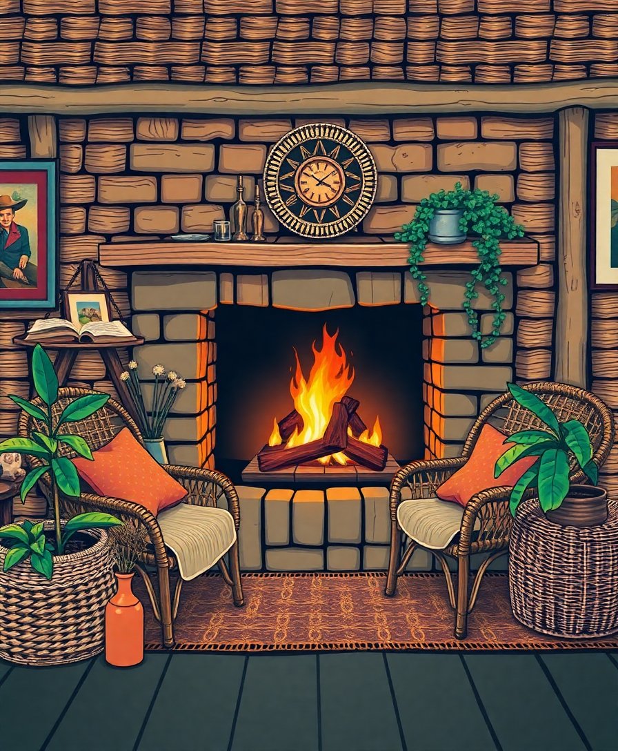 Cozy Vintage Rattan Hearth Paint By Numbers