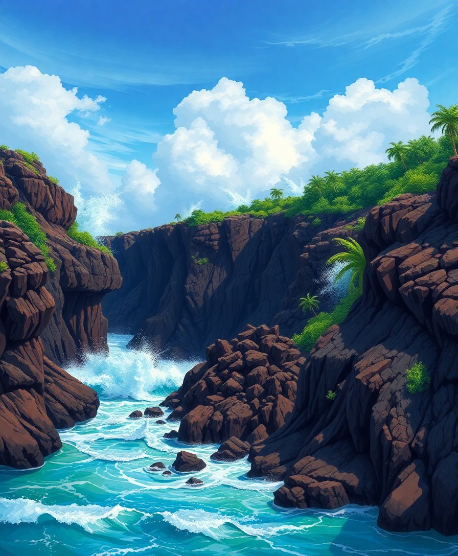 Transform your space with the stunning Crashing Tropical Basalt Tide Paint By Numbers, capturing the raw power of ocean waves against dramatic volcanic cliffs. This extraordinary kit brings tropical seascape beauty directly to your canvas. Experience the therapeutic joy of creating your own beach coastal masterpiece through guided artistic expression.