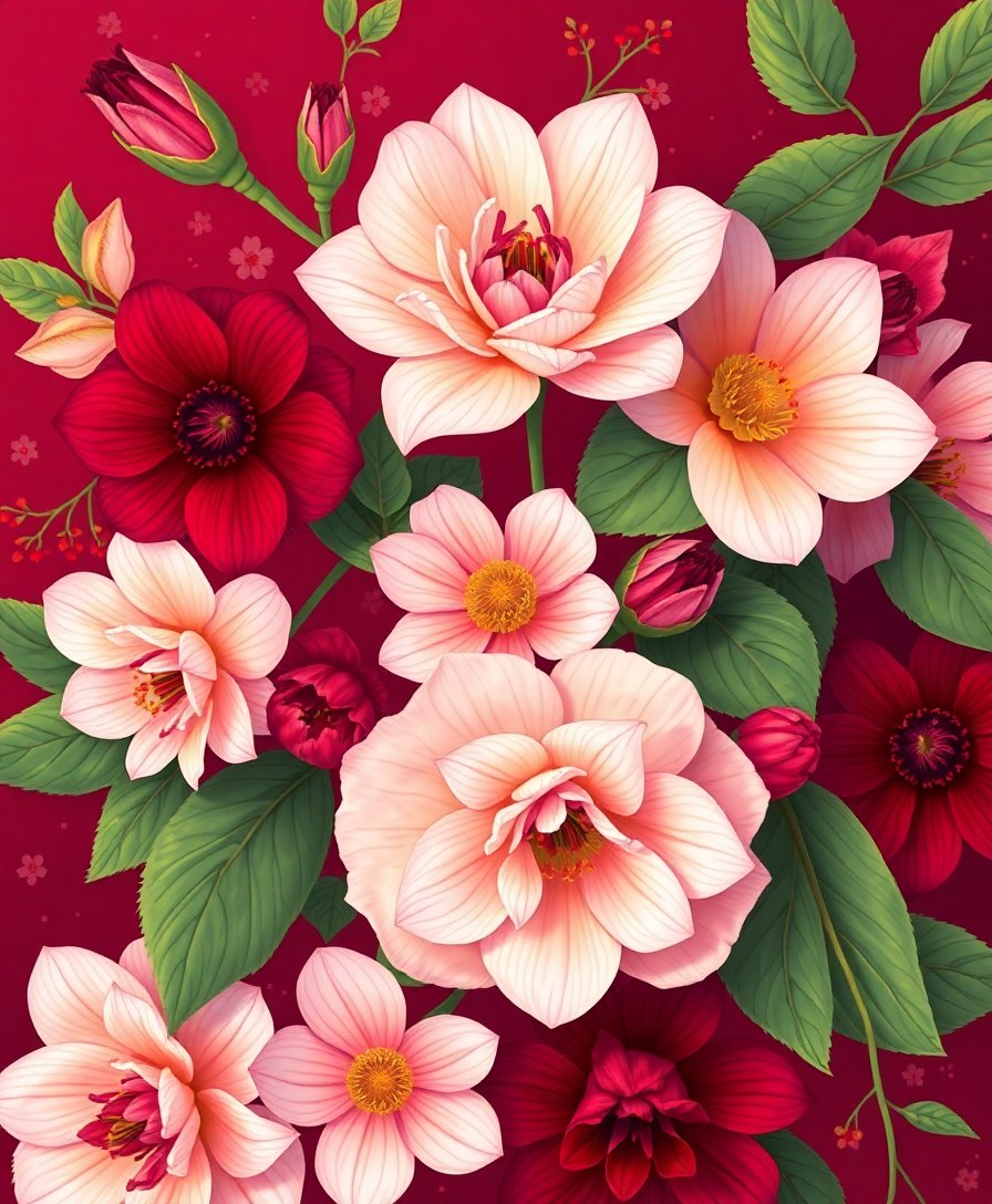 Crimson Crystal Floral Infusion Paint By Numbers