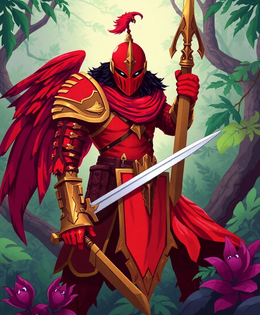 Ultimately, step back and admire your completed tropical warrior masterpiece. The vibrant red armor contrasts beautifully against lush jungle foliage. Your finished artwork radiates the mystical energy of ancient legends combined with exotic natural beauty.