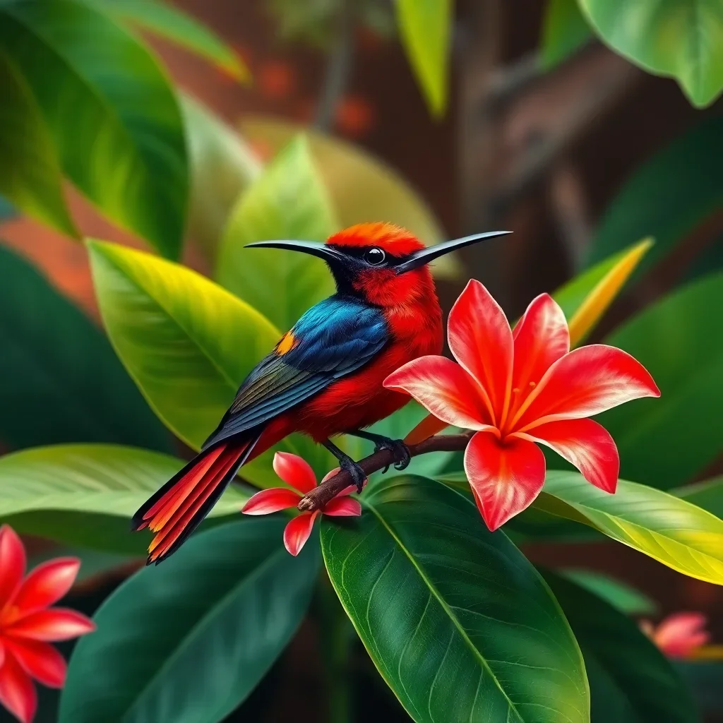 Ultimately, step back to admire your completed crimson sunbird artwork ready for display. The finished piece captures the essence of tropical paradise, bringing warmth and exotic beauty to any room in your home.