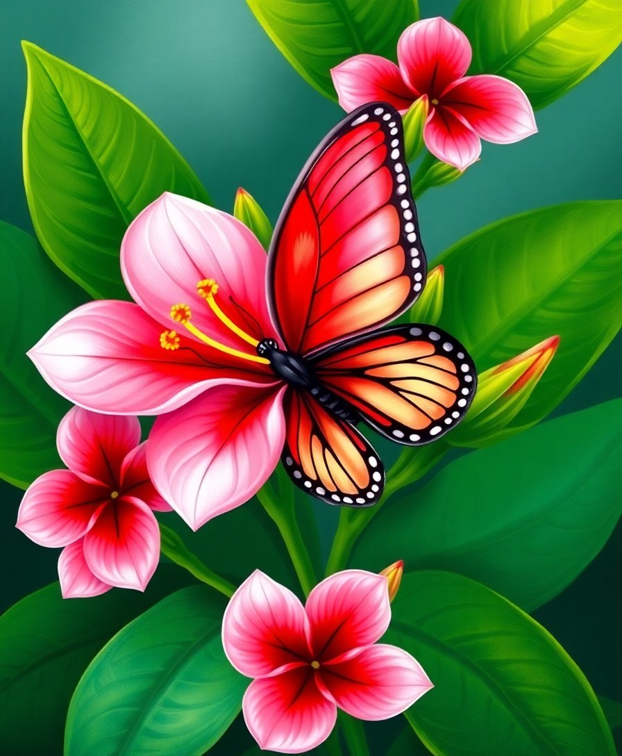 Transform your space with the stunning Crimson Wings Tropical Plumeria Paint By Numbers, where vibrant red butterflies dance among delicate plumeria blossoms. This detailed botanical masterpiece combines realistic wildlife artistry with therapeutic painting relaxation.
