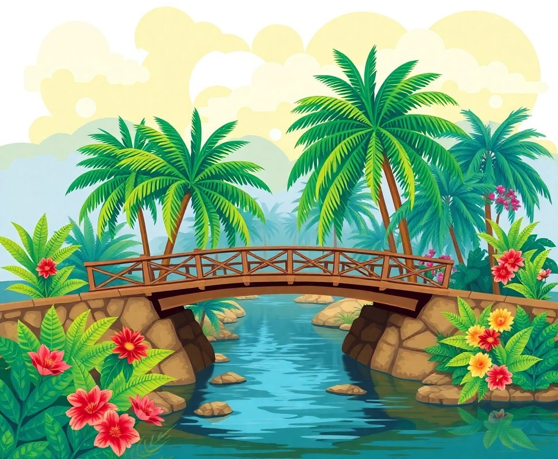 Additionally, exploring suspension bridges through art connects you with remarkable architectural achievements. Start your creative journey today and bring this tropical paradise to life on canvas.