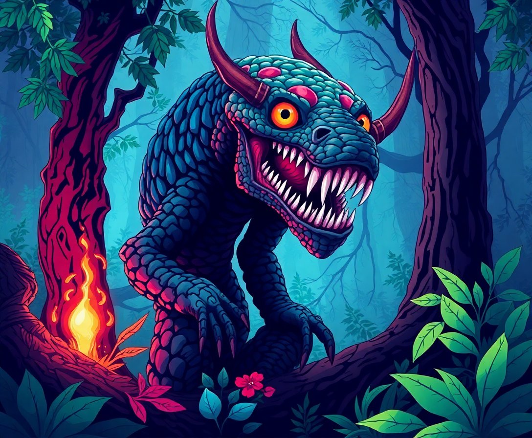 Ultimately, step back and admire your completed tropical mystery artwork. The vintage optics and shadowy depths create an impressive visual narrative. Your finished piece captures the essence of cryptid exploration perfectly.