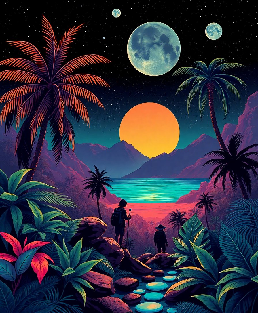 Transform your artistic journey with this captivating Dark Retro Tropical Expedition Paint By Numbers design. Moreover, this enchanting kit transports you to mysterious cosmic jungles where vintage exploration meets futuristic wonder. Furthermore, each brushstroke unveils hidden treasures within this extraordinary artistic adventure.