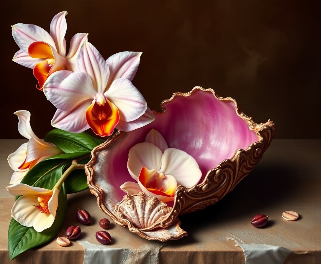Transform your creative space with the stunning Decadent Orchid Broken Shell Paint By Numbers. This exquisite kit captures the dramatic beauty of baroque still life art. The intricate design features delicate orchids nestled within shattered shells, creating a masterpiece worthy of display.