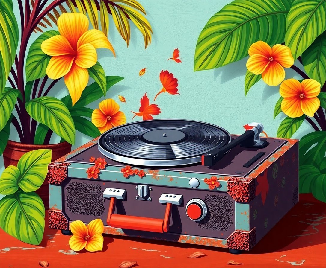 Transform your artistic journey with this hauntingly beautiful Decaying Tropical Record Player Paint By Numbers design. This vintage-inspired masterpiece captures the nostalgic essence of forgotten music equipment. Each brushstroke reveals layers of overgrown tropical decay in rich sepia tones.