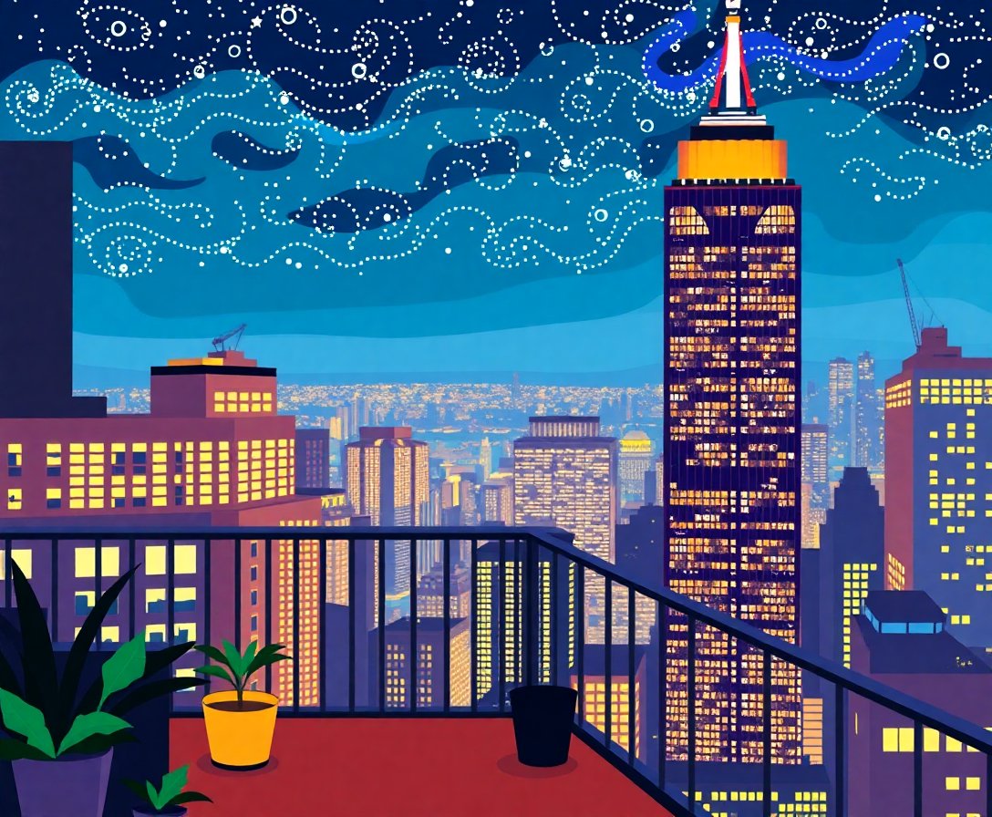 What’s Included in Your Deco Skyscraper Balcony Night Paint By Numbers Kit