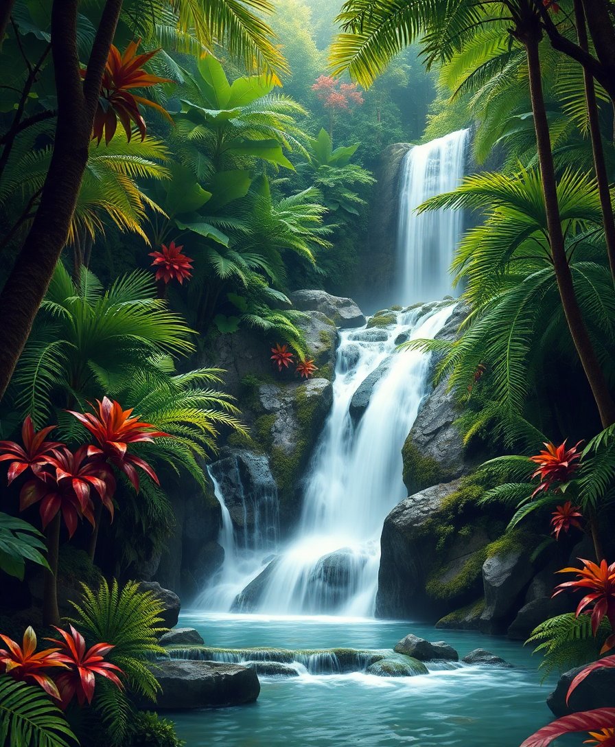 Ultimately, step back and admire your completed tropical paradise as vibrant falls emerge from lush fern surroundings. Furthermore, applying final touches enhances the realistic depth and tropical atmosphere. Consequently, your masterpiece radiates the serene beauty of hidden jungle waterfalls.