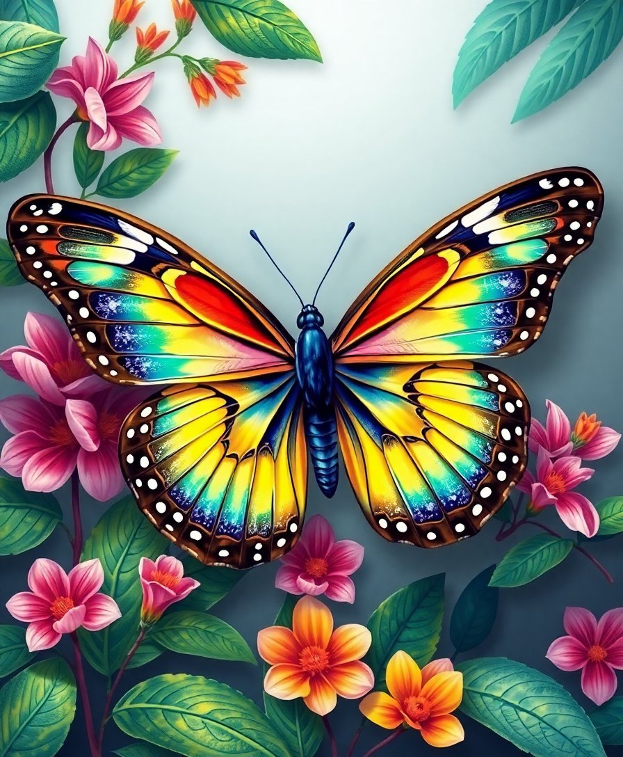 Ultimately, add final details to wings and tropical foliage. Step back and admire your completed realistic butterfly study. Your finished artwork showcases stunning tropical beauty.
